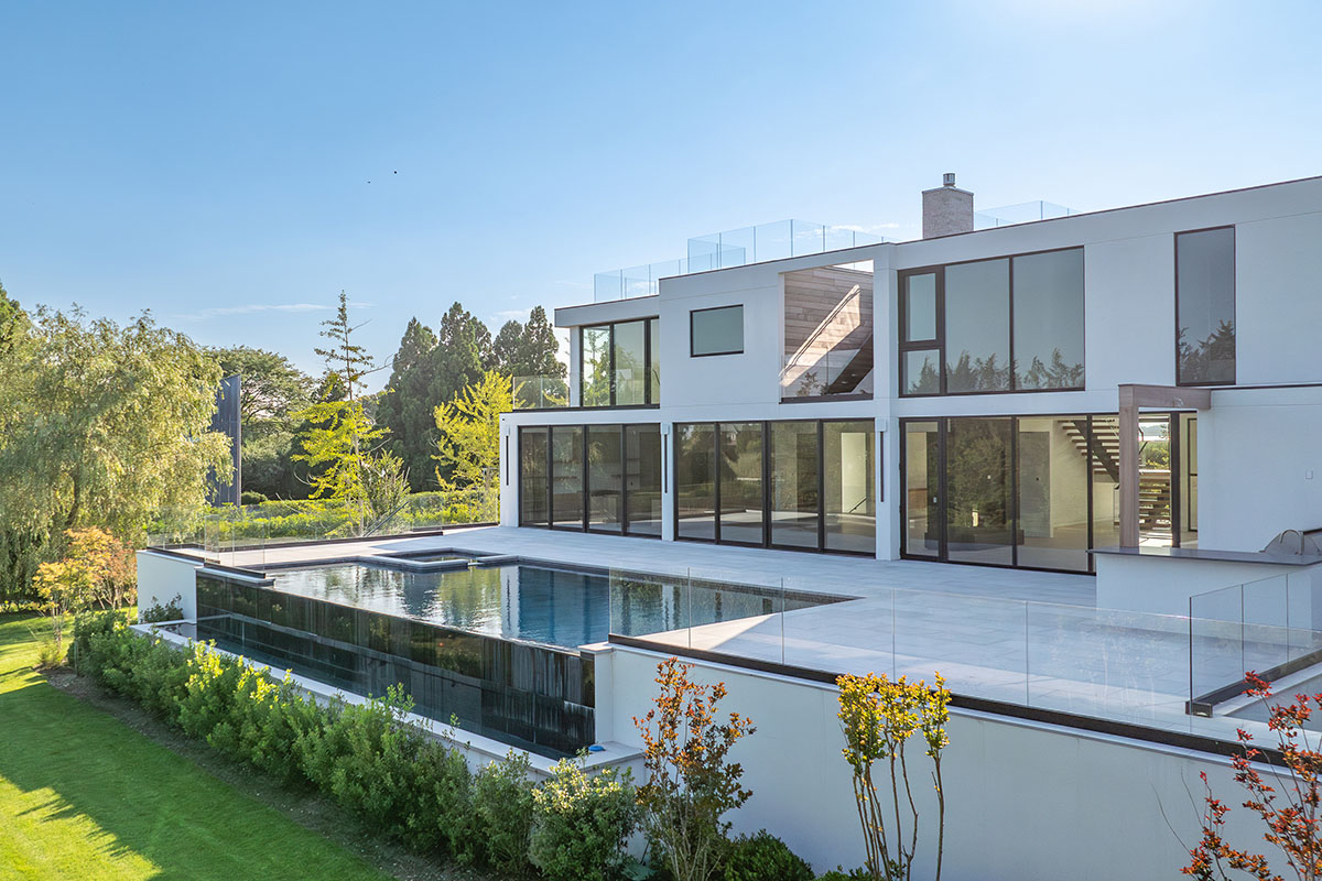 This spectacular home, situated far south of the highway in Bridgehampton, provides an unparalleled level of luxury living. Designed by McDonough & Conroy and in collaboration with Luxury builder, Hampton Builders, Inc. and Fineo Development Group. Interior design by Chris Mead of English Country Homes and Leslie Norton Fineo of LNF Interiors. Landscape design by Renowned Landscape Architect Dean Gomolka. Inspired by the demand for warmer and more natural modern homes, Pointe Mecox embodies a soft material palette highlighted by the use of limestone, stucco, and custom cedar siding. This home has the perfect south of the highway location with Ocean, Bay and Pond Views.